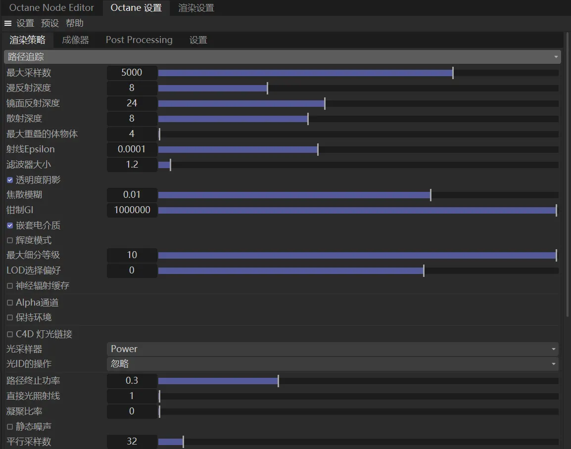∙仅“Octane Settings”部分基本全译,其他界面内容仍以英文为主;